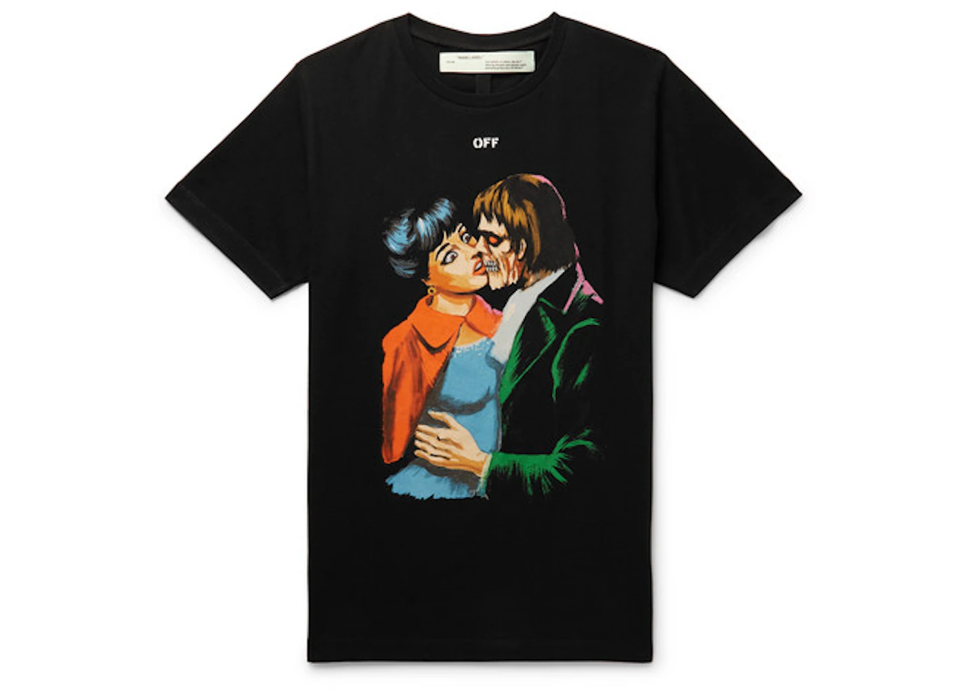 Off White Slim Fit Kiss Graphic Print T Shirt Black Multicolor Ss19